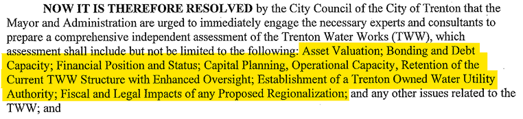 Wasn't this all a part of what the NJDEP COMMISSIONER recommended. I will definitely review his letter and presentation but I do recall his acknowledging the need for update on Asset valuation and bond capacity as part of the DEP's proposed study of how to regionalize TWW.